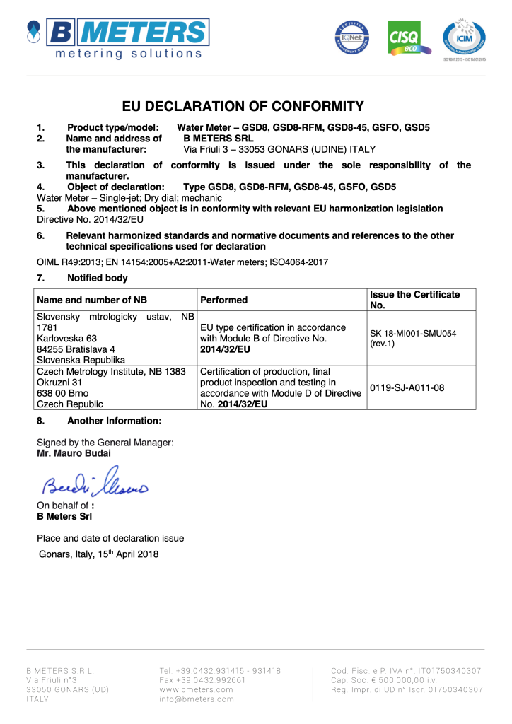 Conform cu normativele ISO 4064 și OIML R49